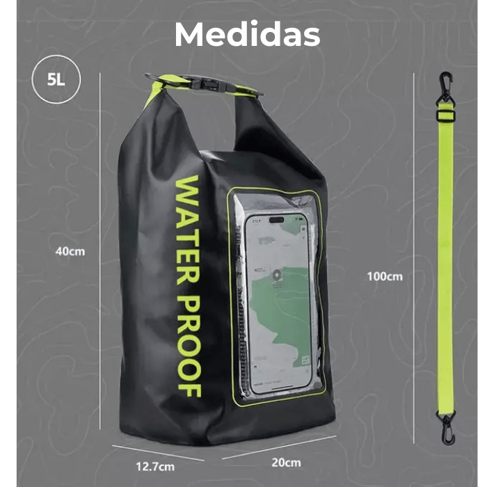 🧳 Capacidade ideal de 5L: tamanho perfeito para levar o essencial — celular, carteira, chaves, toalha, roupas leves e equipamentos pequenos.