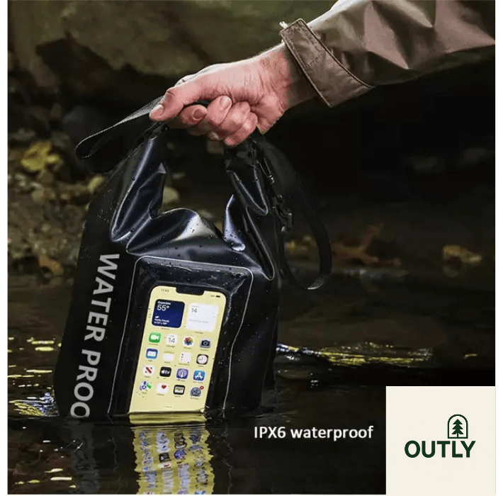 A Bolsa impermeável 5L Outly Waterproof Bag, fabricada pela Tanluhu, é feita em PVC de alta resistência e foi projetada para proteger seus objetos da água, areia e umidade durante atividades ao ar livre.