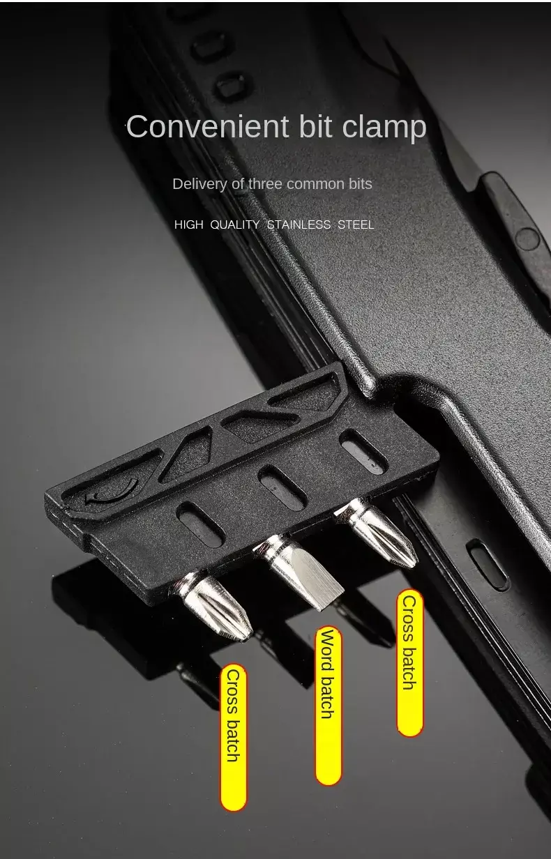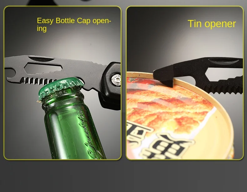 Design multifuncional, este alicate permite que você faça qualquer coisa.Você recebe um mini martelo, grampos, abridor de garrafas, chave de fenda, extrator de pregos, etc.