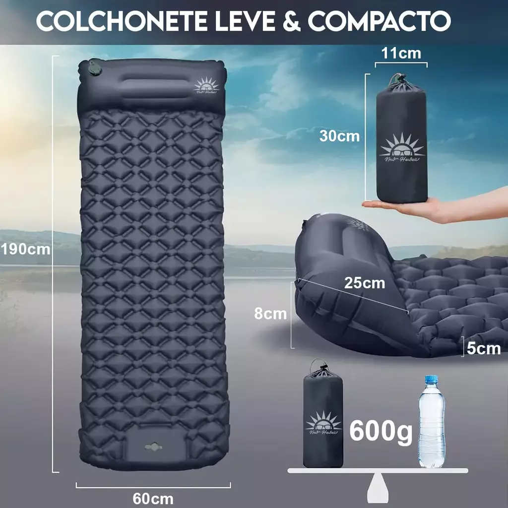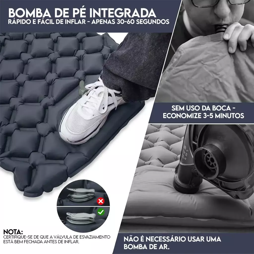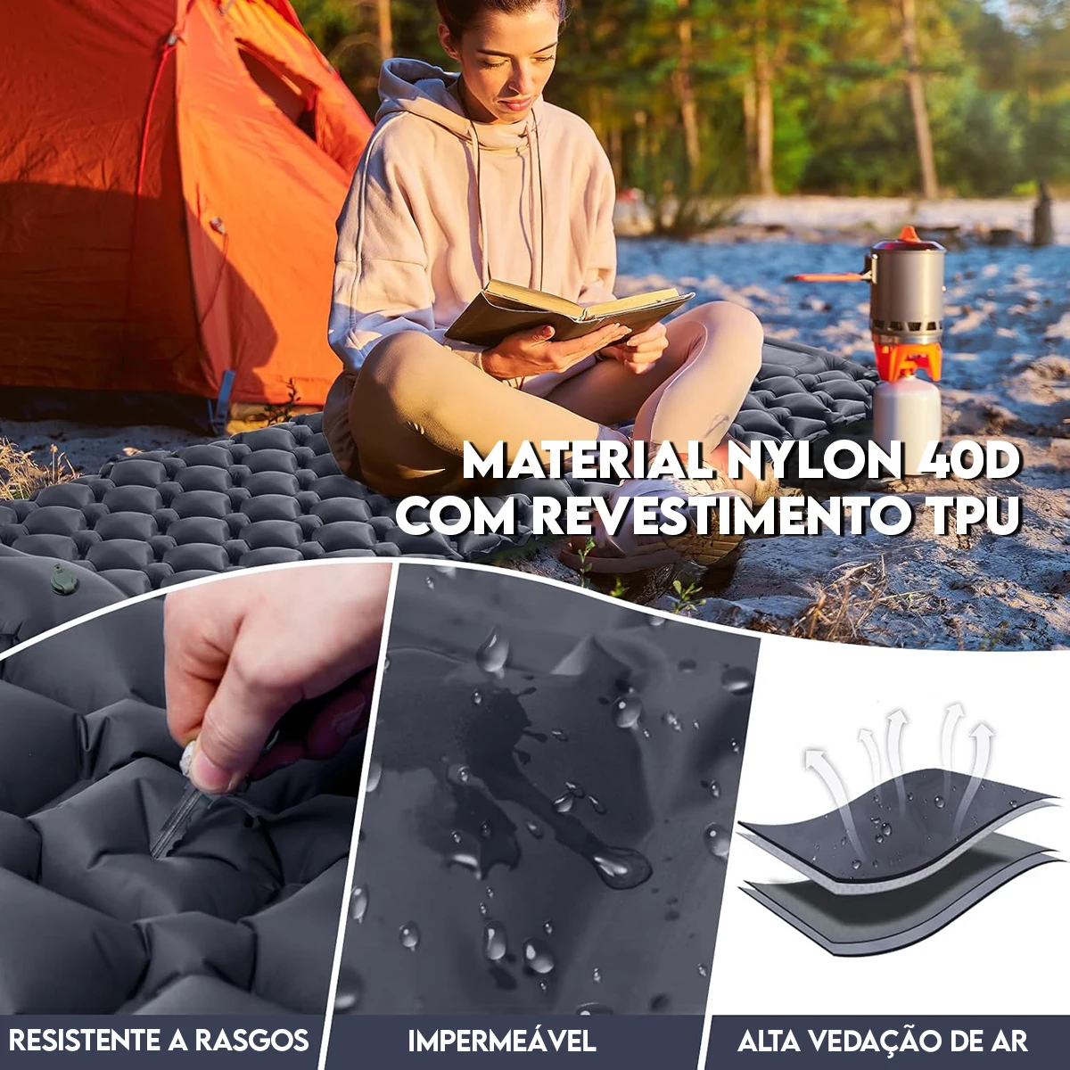 O tapete de acampamento inflável é o companheiro perfeito para suas atividades ao ar livre, como acampamentos, caminhadas, pesca e montanhismo. Ele não só proporciona conforto superior, mas também torna sua experiência ao ar livre mais agradável.