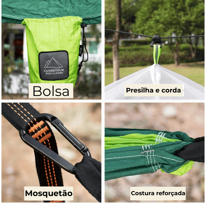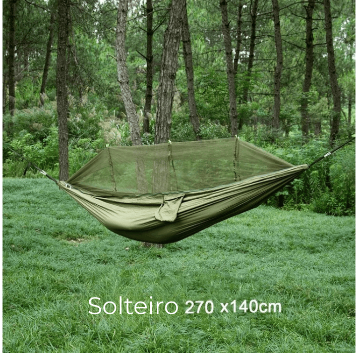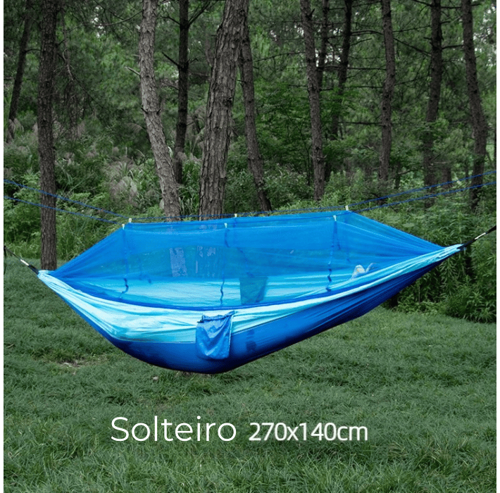 Compacta, resistente e com mosquiteiro integrado, é perfeita para acampamentos, trilhas, pesca e momentos de relaxamento ao ar livre.