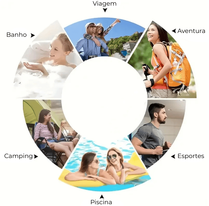 Perfeita para camping, academia, trilhas, praia, piscina, yoga e viagens, ela combina tecnologia e conforto em um design moderno e funcional.